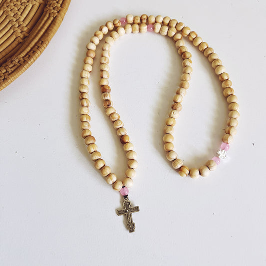 Wooden 100 Bead Prayer Bracelet with Pink Spacers and Silver CrucifixRegular price $25.99 USDRegular priceUnit price / per-