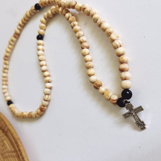 Wooden 100 Bead Prayer Bracelet with Wooden Spacers and Silver CrucifixRegular price $25.99 USDRegular priceUnit price / per