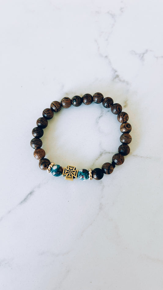Brown Prayer Bracelet with Blue and Gold Spacers