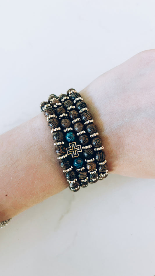 Wenge Wood Prayer Bracelet with Gold Cross & Spacers - Handcrafted Orthodox Prayer Rope
