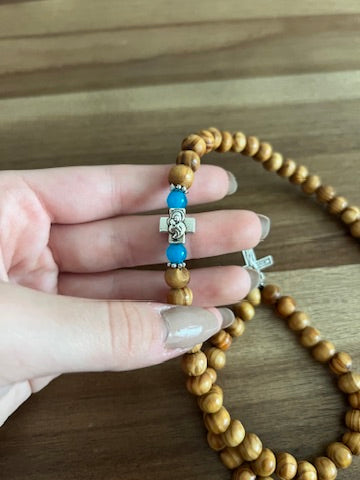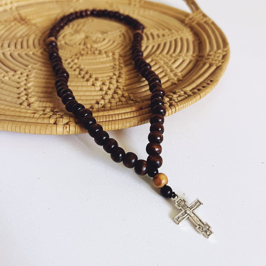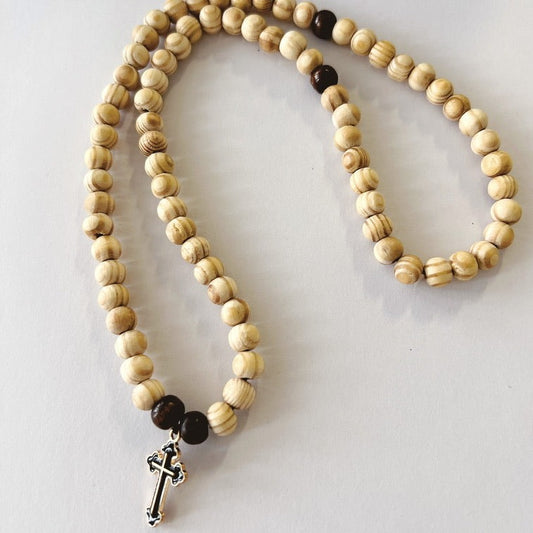 Pulsera de oración de madera de 75 cuentas con cruz esmaltada en negroPrecio habitual $19.99 USDPrecio habitualPrecio unitario / por-