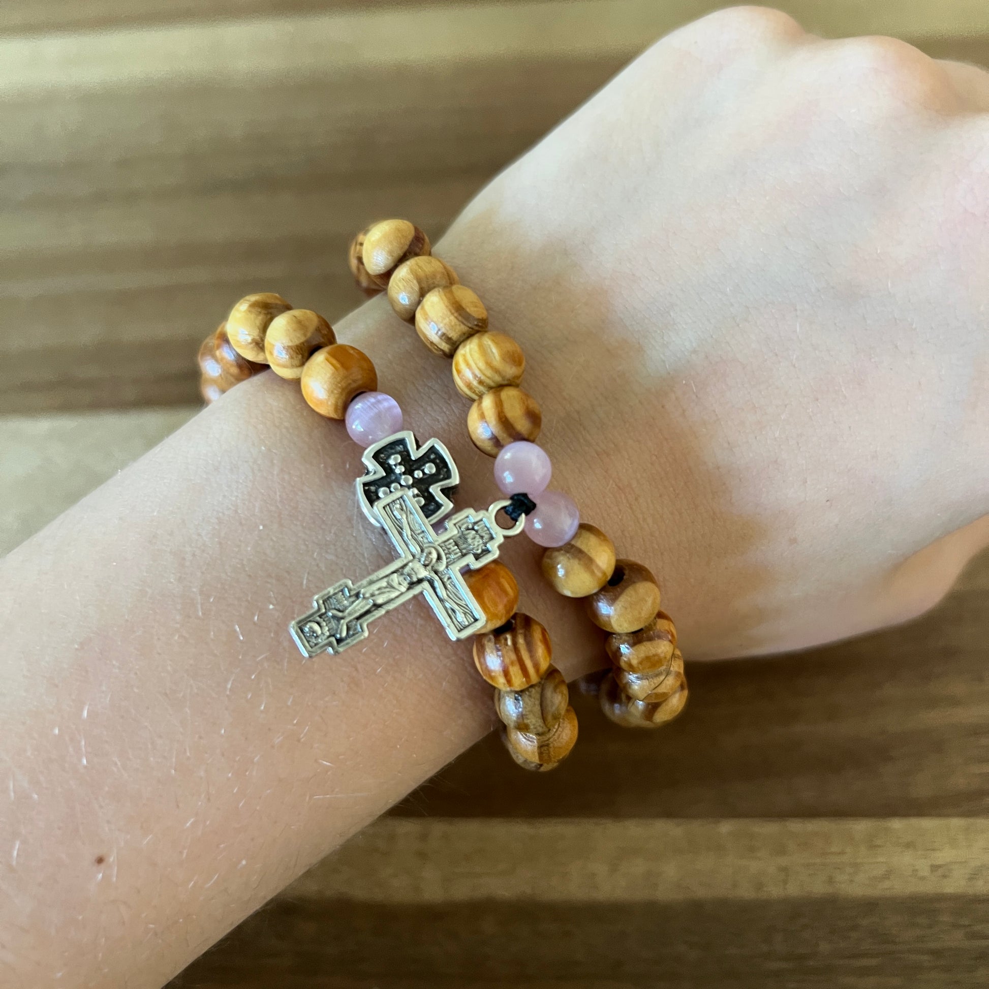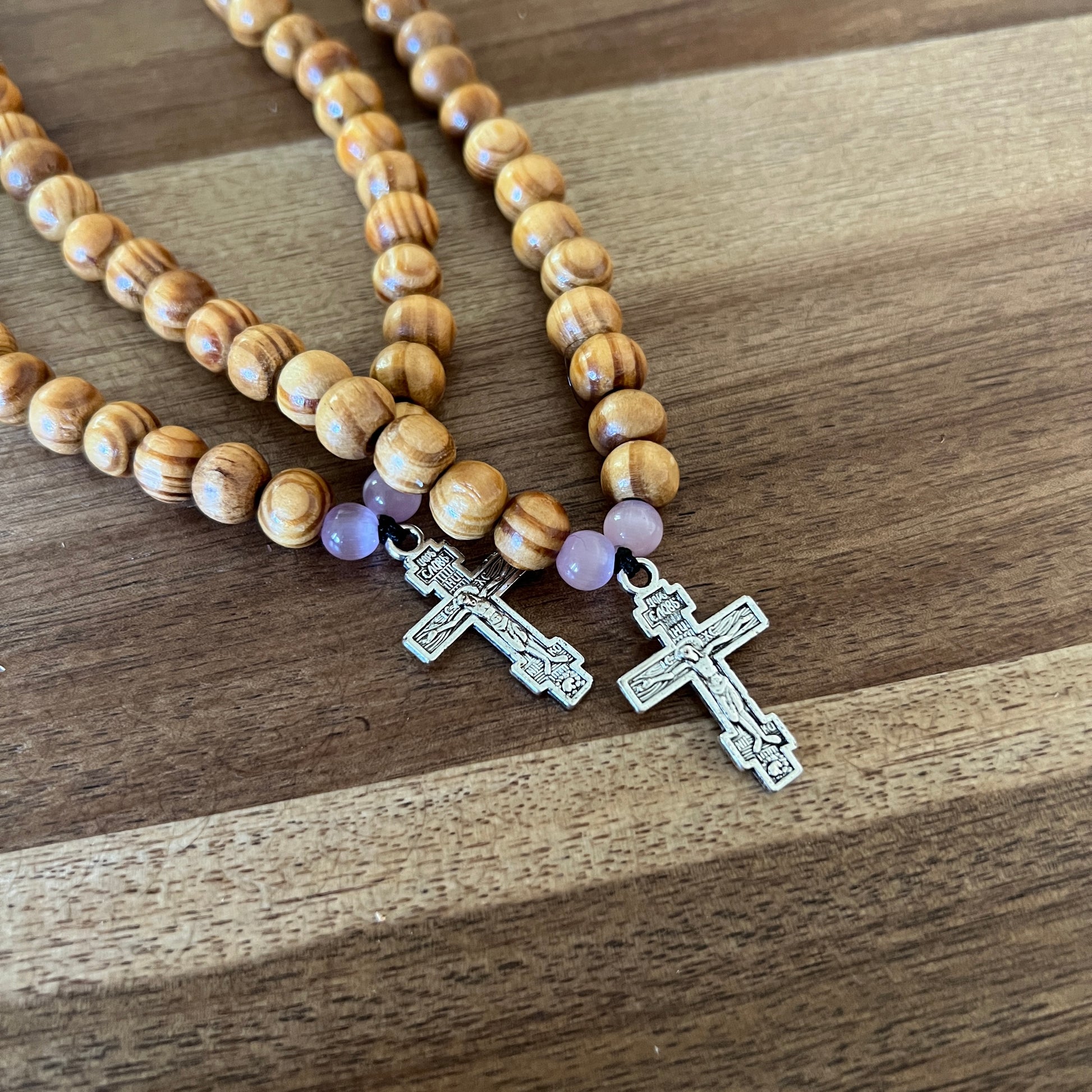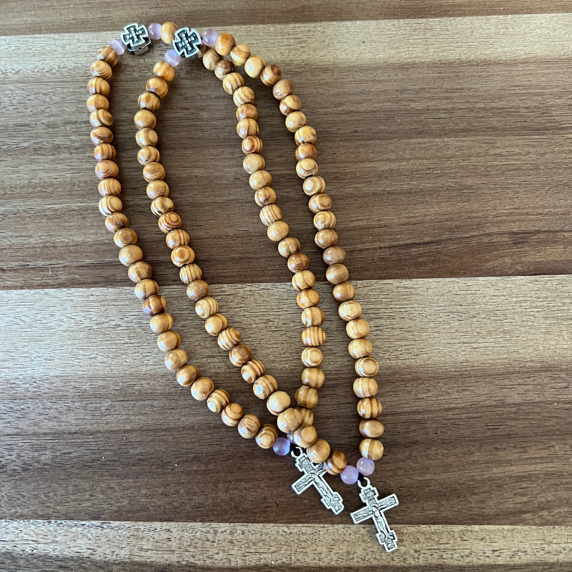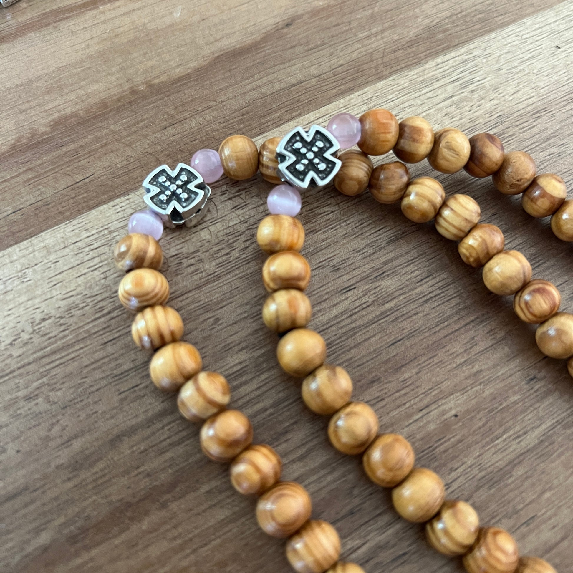Connect with Christ with our 50 bead prayer bracelet. Prayerfully hand made from high-quality wooden beads and a silver cross in the Orthodox Christian style.