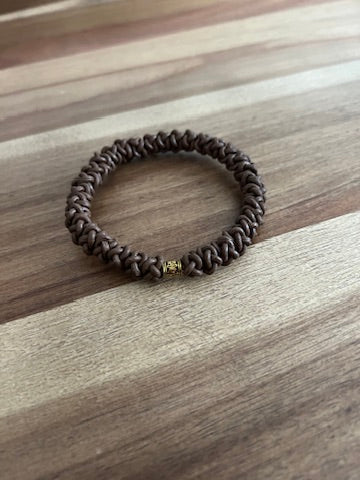 This is a beautiful handmade prayer bracelet made from leather and finished with a gold bead.