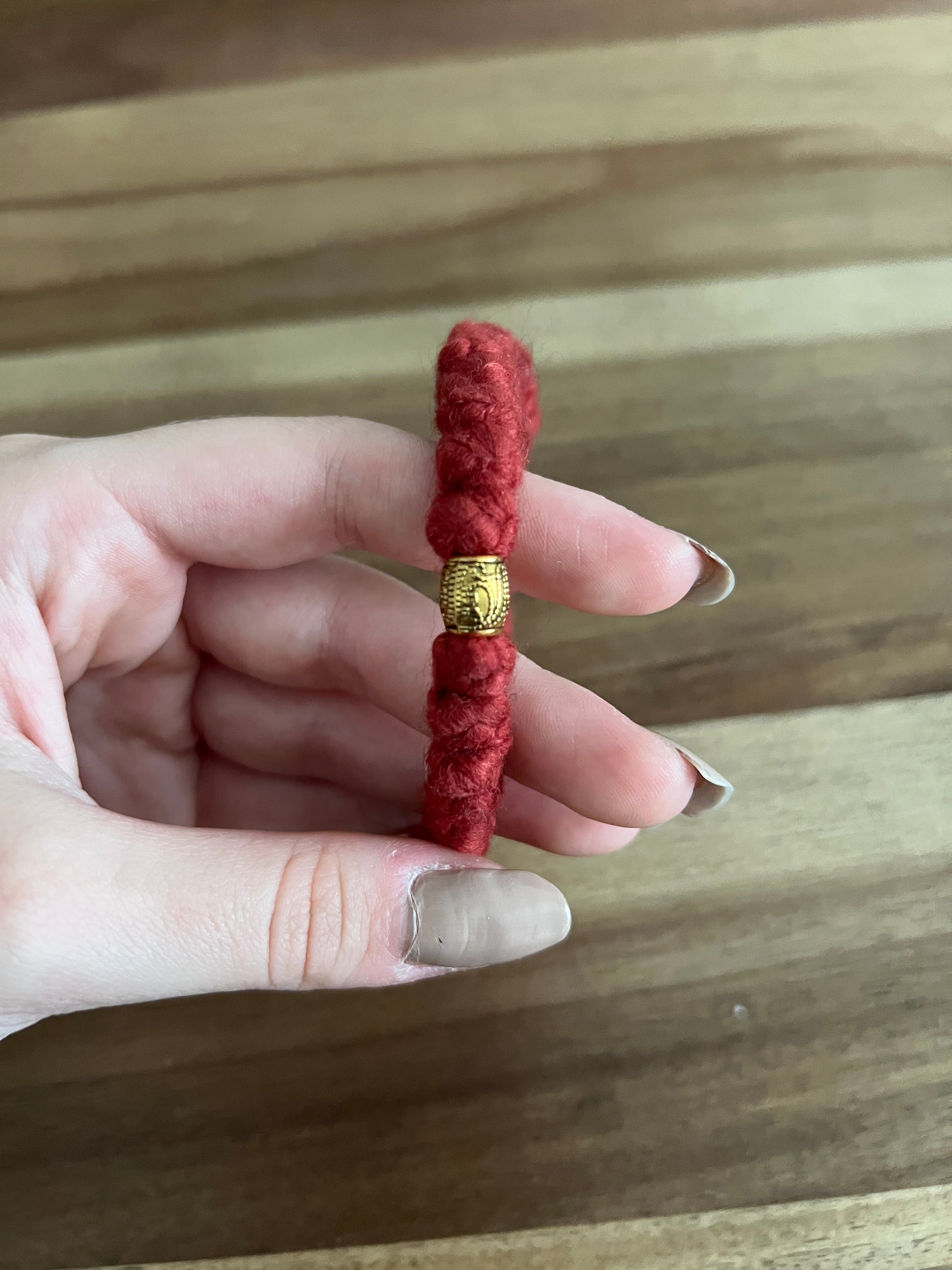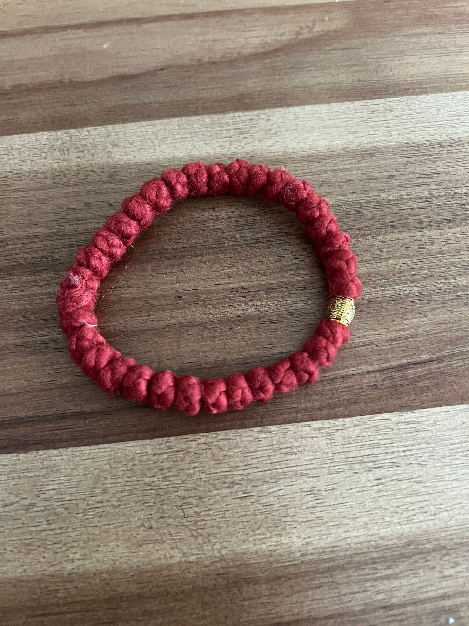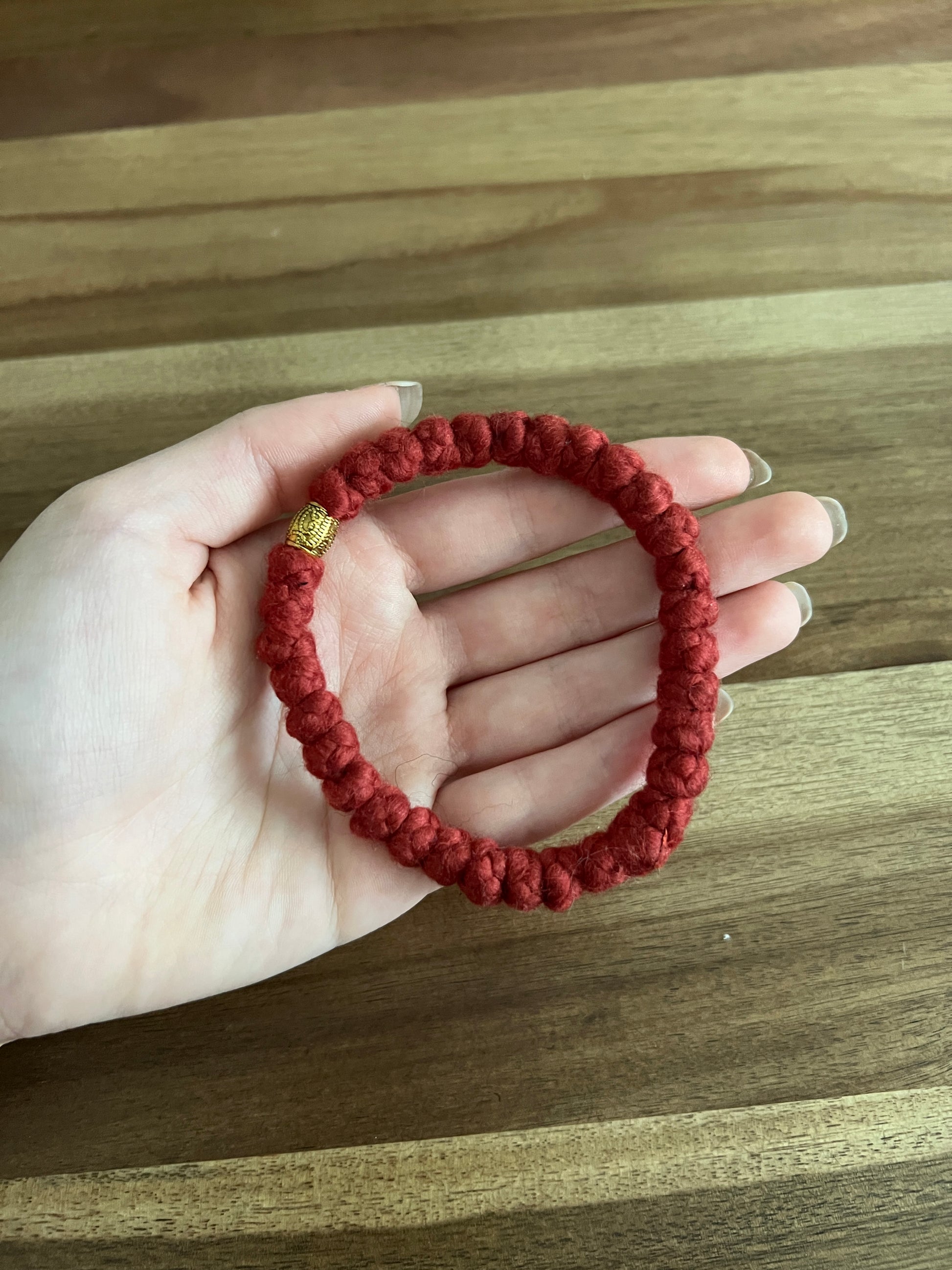 Red Roving Wool 33 Knot Prayer Bracelet with Gold Spacers