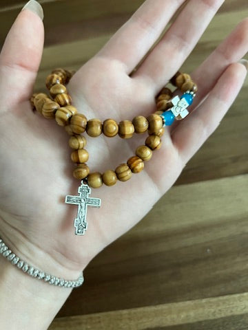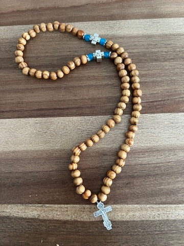 Connectez-vous au Christ avec notre bracelet de prière de 75 perles. Fabriqué à la main avec soin, à partir de perles en bois de haute qualité et d'une croix émaillée noire, dans le style chrétien orthodoxe.