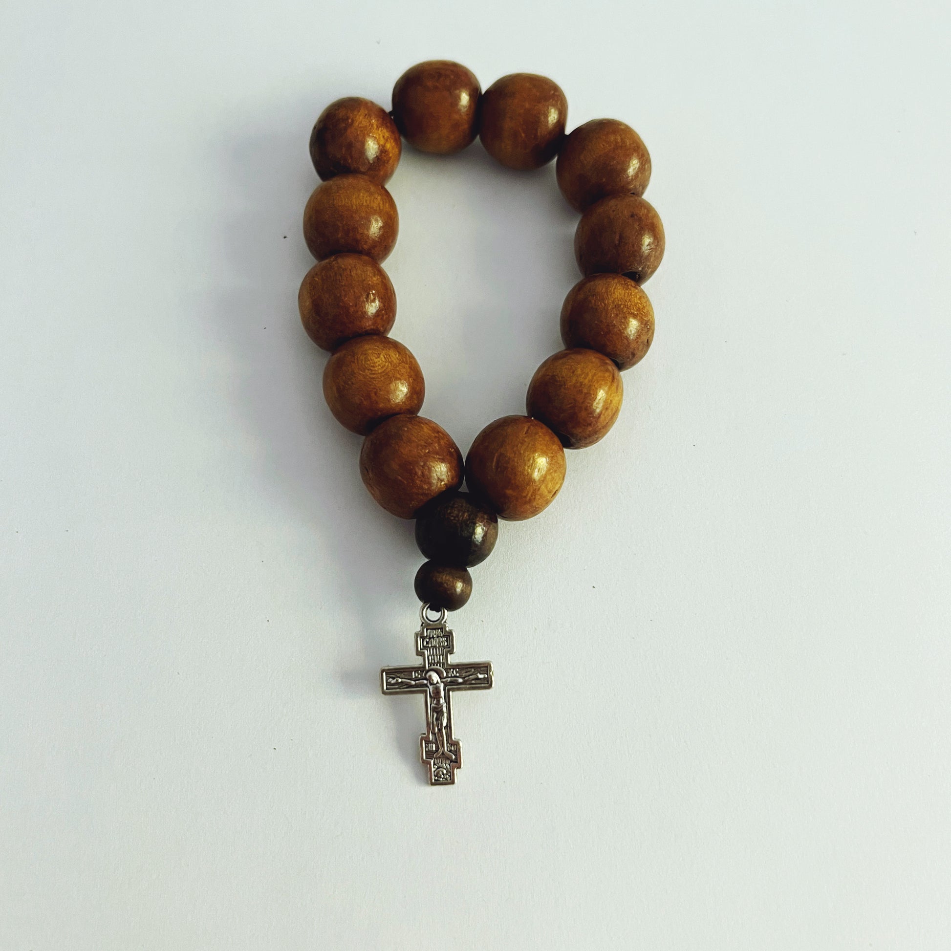 Connectez-vous au Christ avec notre bracelet de prière à 12 perles. Fabriqué à la main avec soin, à partir de perles en bois de haute qualité et orné d'un crucifix en argent. Style chrétien orthodoxe.