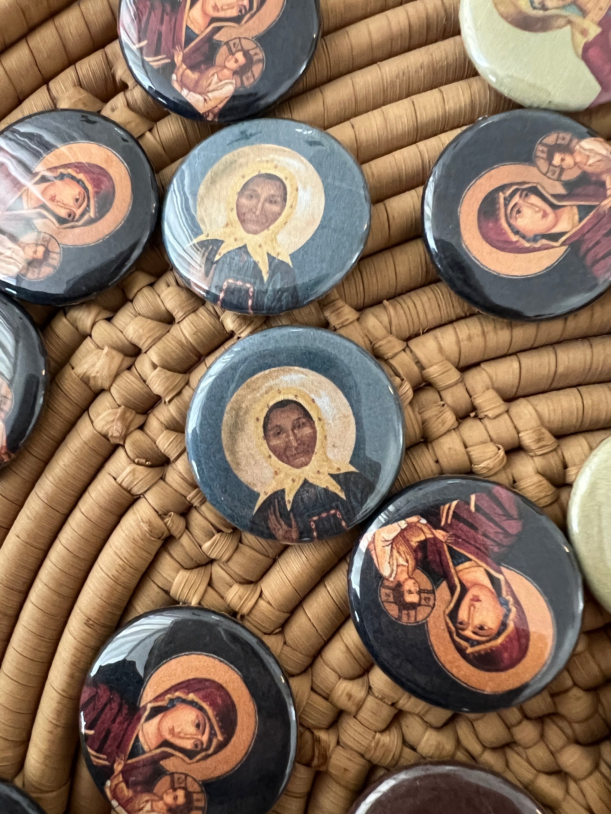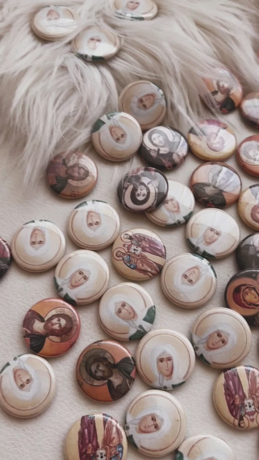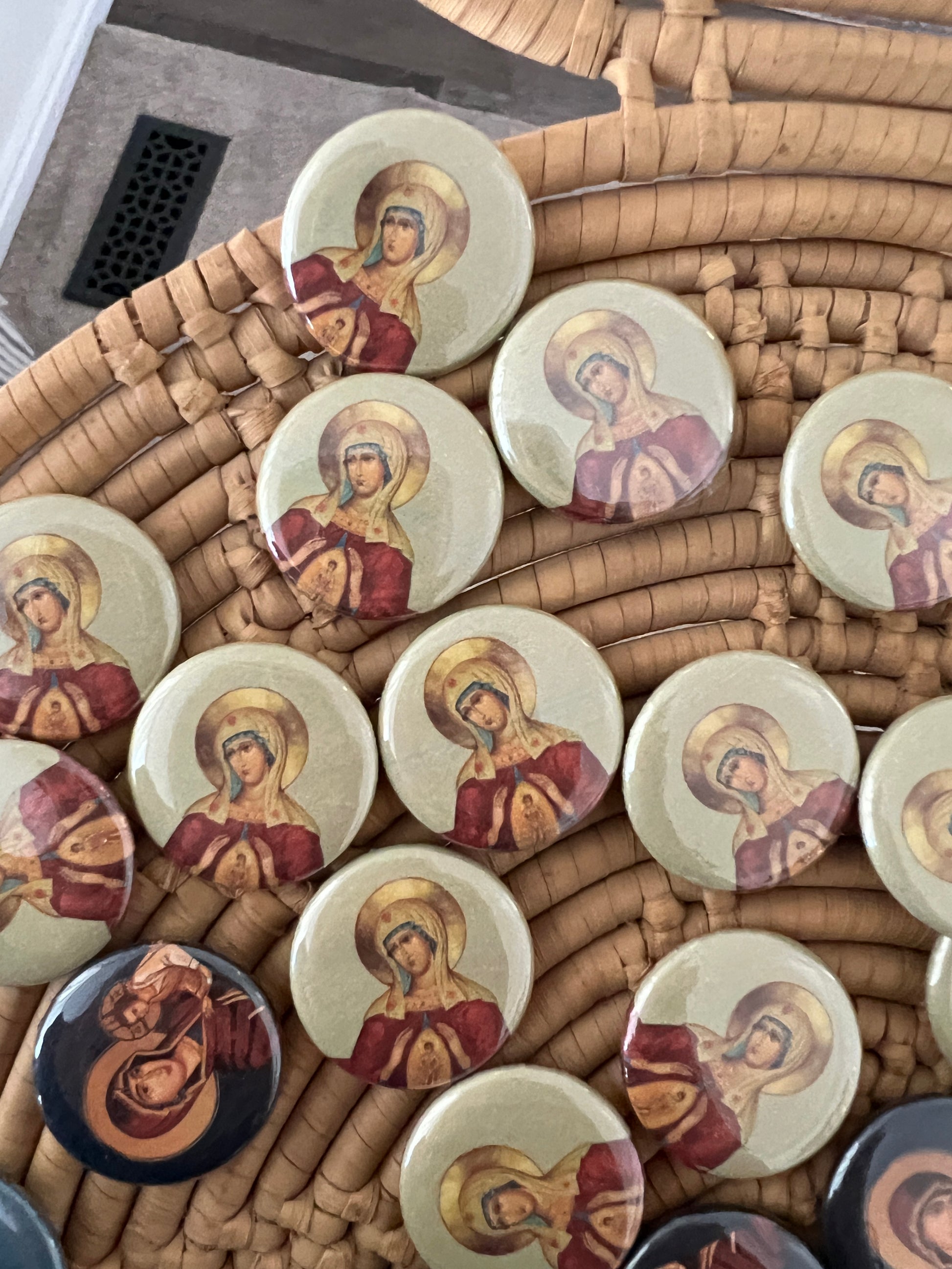 Handmade 1” Eastern Orthodox Christian pins featuring various icons. All parts are made in America. Colors may slighly vary.