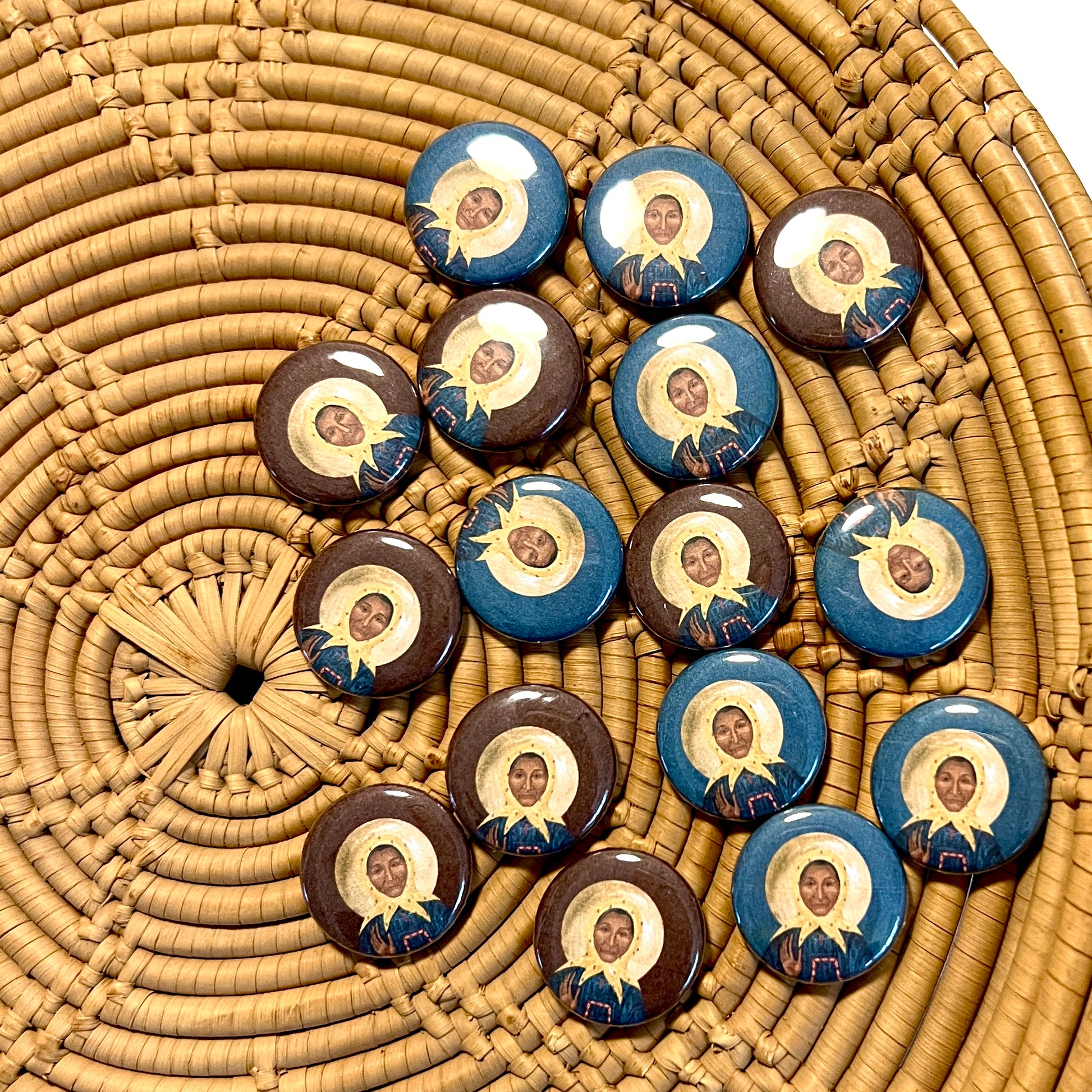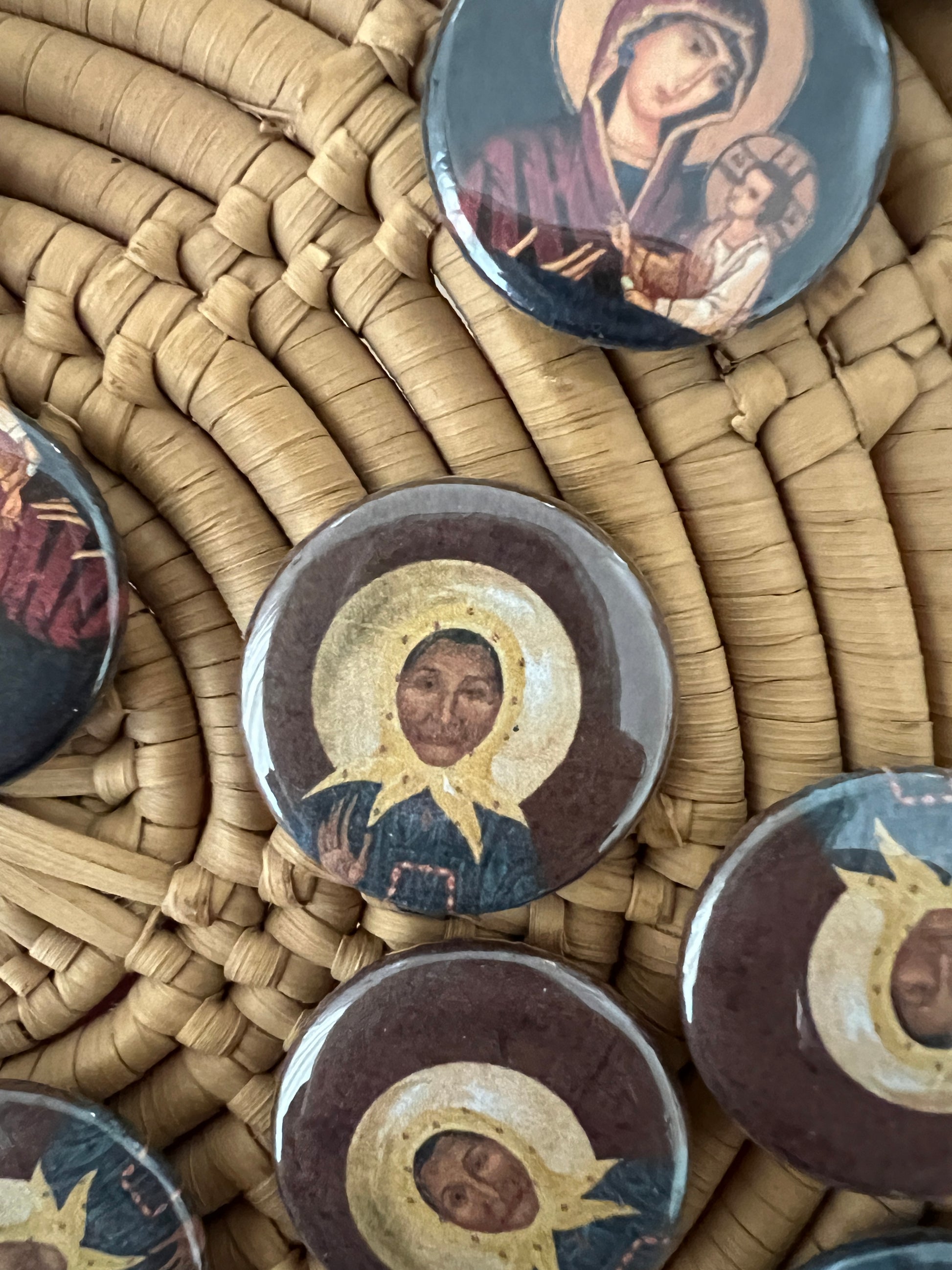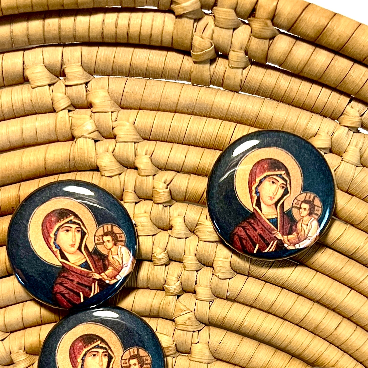 Handmade 1” Eastern Orthodox Christian pins featuring various icons. All parts are made in America. Colors may slighly vary.