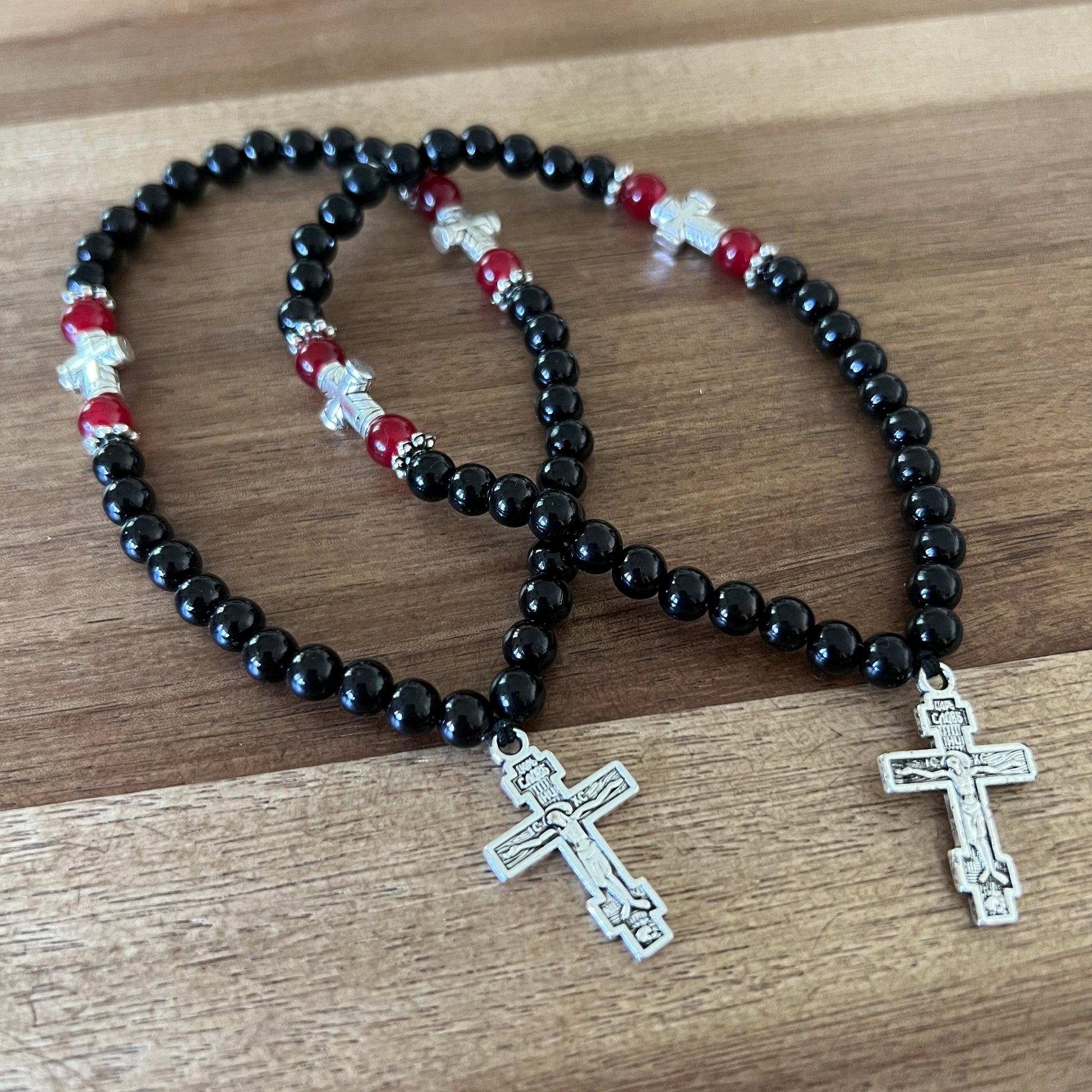 Connect with Christ with our 33 bead prayer bracelet. Prayerfully hand made from high-quality wooden beads and a silver cross in the Orthodox Christian style.