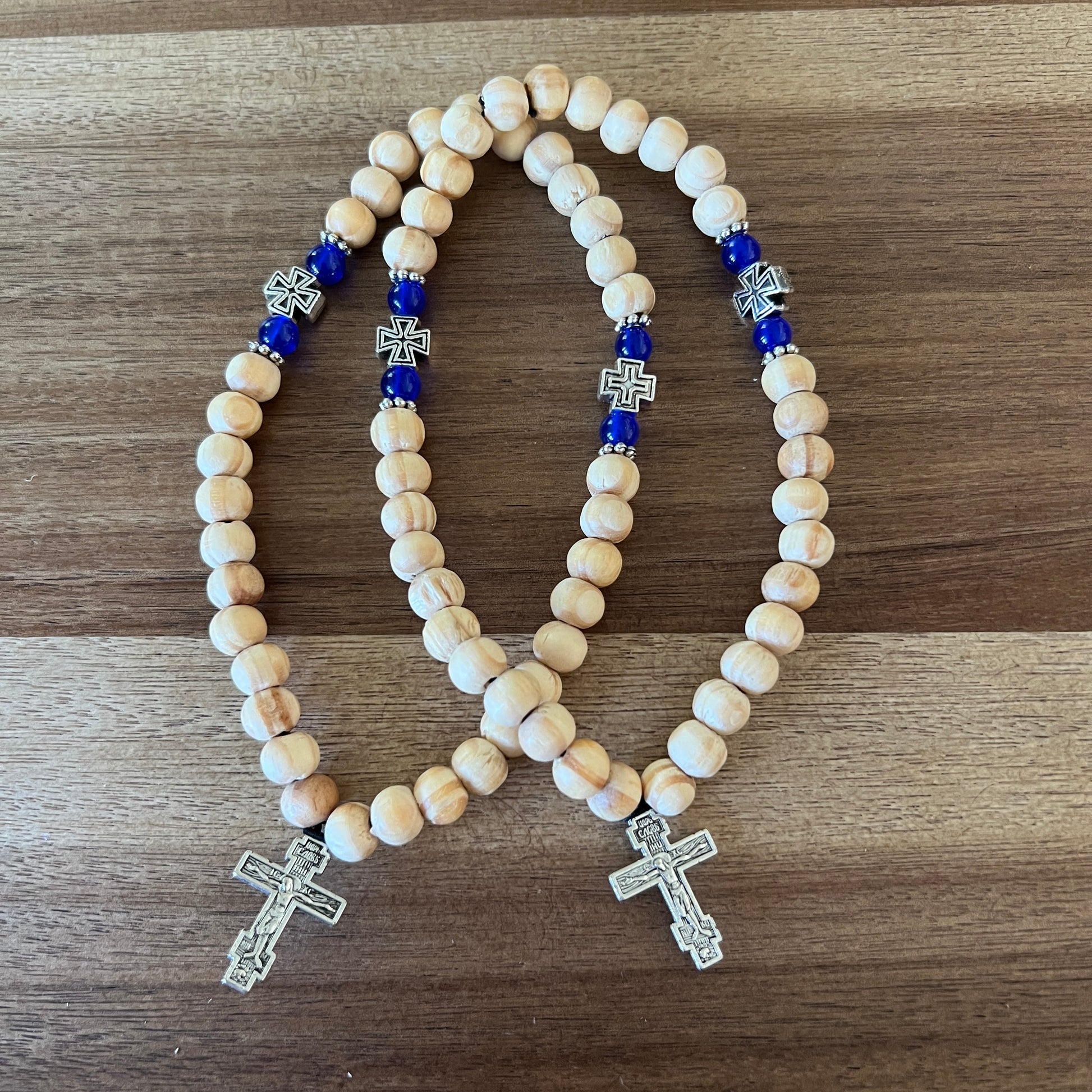 Connect with Christ with our 33 bead prayer bracelet. Prayerfully hand made from high-quality wooden beads and a silver cross in the Orthodox Christian style.
